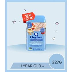 33Gerber Cereal for Toddler Grain & Grow Hearty Bits is a multigrain cereal blended with banana, apple, and strawberry, specially crafted for toddlers aged 12+ months to support healthy growth and development.