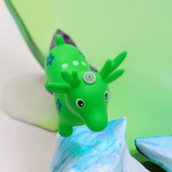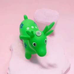 Green inflatable toy designed for young children, often referred to as a "bouncy animal hopper" or "ride-on hopper." Shaped like a deer or reindeer with stylized antlers, it is made from durable, bouncy rubber or PVC material.