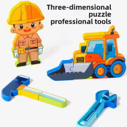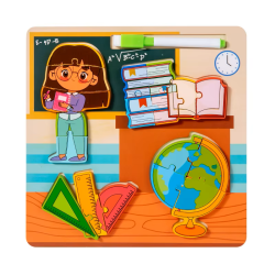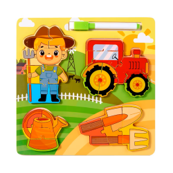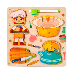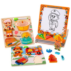The educational puzzle board set features various occupations such as firefighter, chef, police officer, and construction worker. Each board includes removable puzzle pieces shaped like people, tools, or vehicles related to that occupation. It also includes a whiteboard area for drawing with a marker. The set helps children learn about different jobs, develop fine motor skills, and enhance problem-solving abilities through hands-on play and creative expression. Made with child-safe, durable materials, it's ideal for early learning and preschool environments.